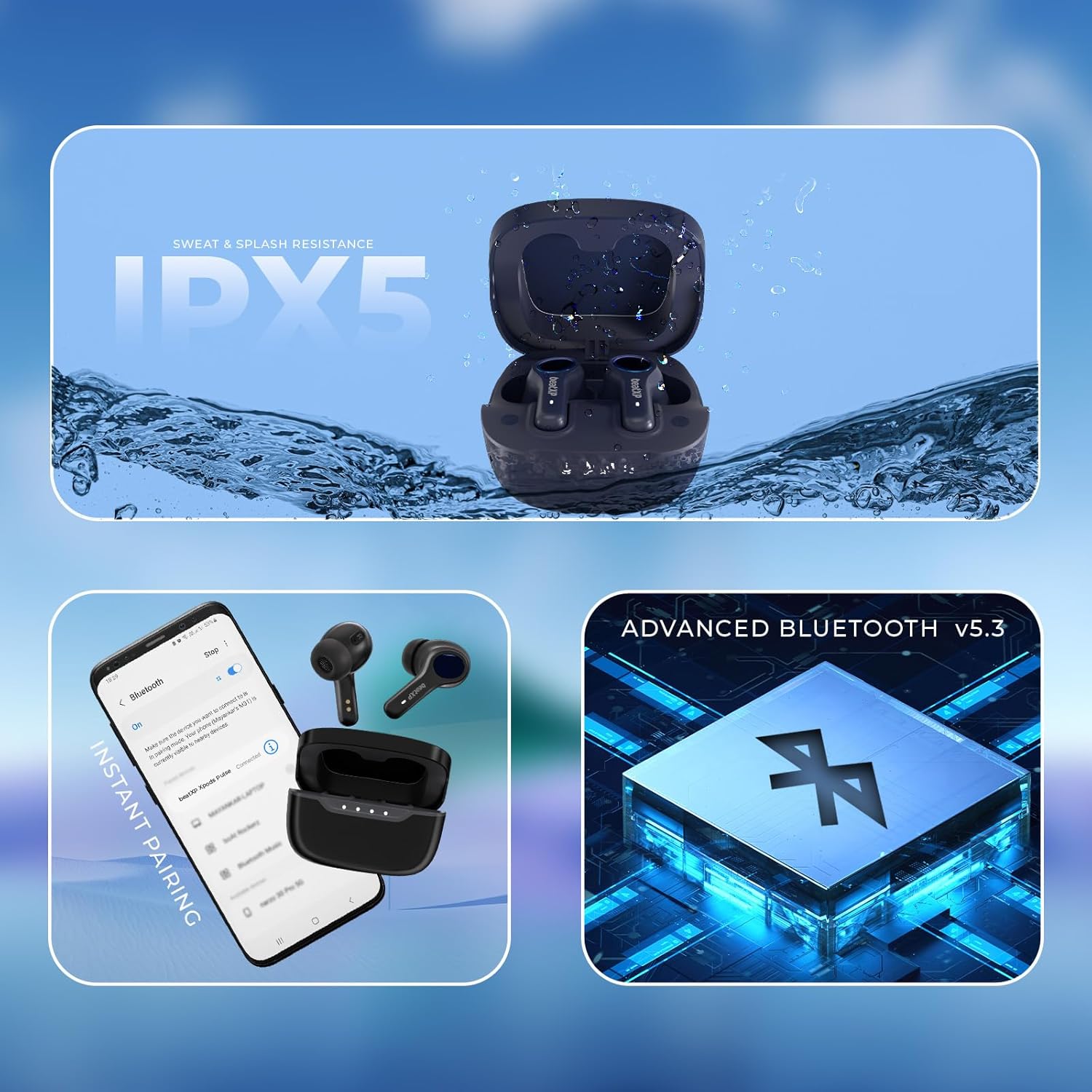 IPX5 Water Resistance: The Pulse XPods are water resistant earbuds and your ultimate partner in every adventure.